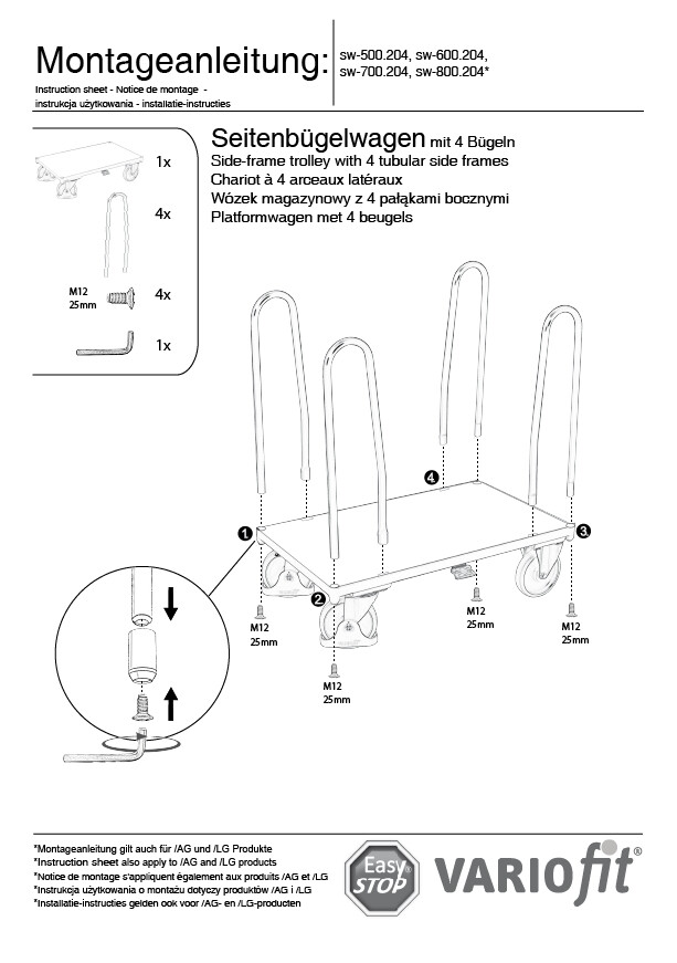 Plattformwagen VARIOfit mit 4 Seitenbügeln, 1200 x 800 mm, Tragfähigkeit 500 kg.