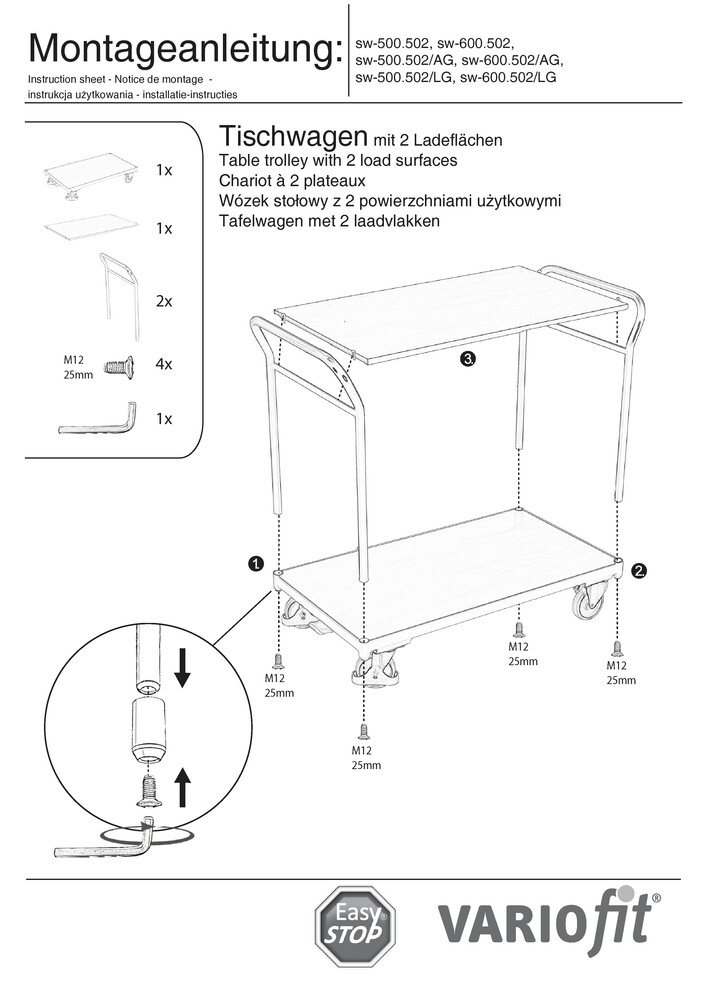 Tischwagen VARIOfit mit 2 Etagen, 2 Stirngriffe, 1000x600 mm,Tragfähigkeit 200 kg