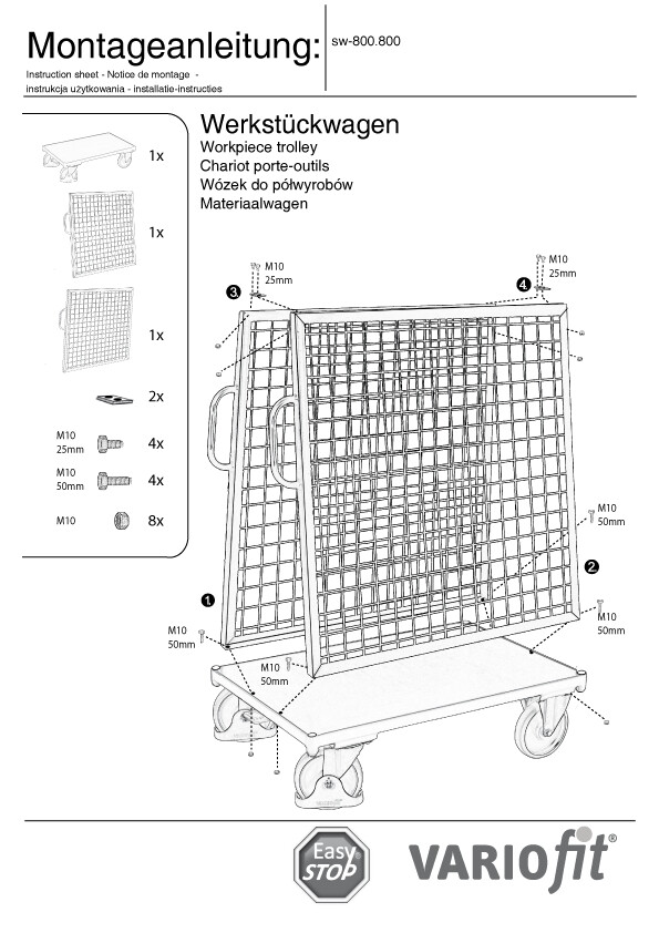 Werkstückwagen VARIOfit mit Drahtgitter, 1200 x 800 mm, Tragfähigkeit 500 kg