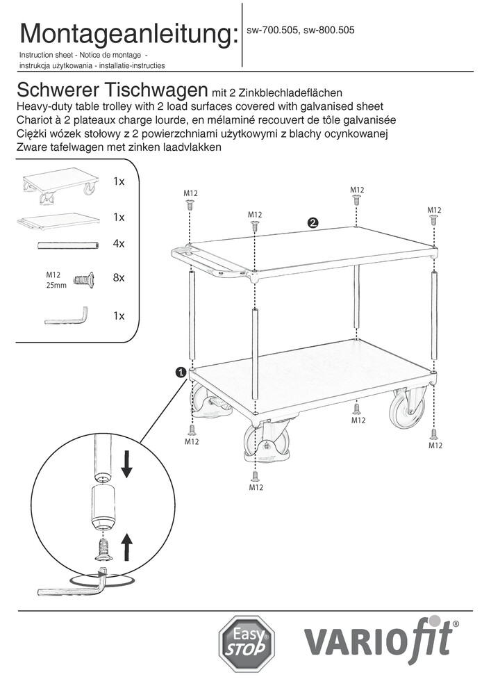 Tischwagen VARIOfit, Ladefläche mit verzinktem Stahlblech, 1000x700 mm, Tragfähigkeit 500 kg