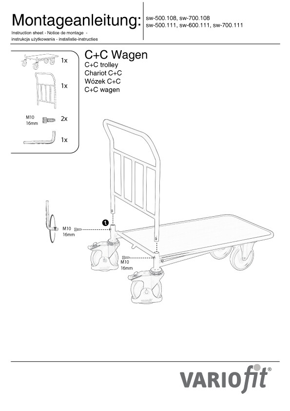 CC-wagen VARIOfit mit Schiebebügel, 1030 x 700 mm, Tragfähigkeit 500 kg