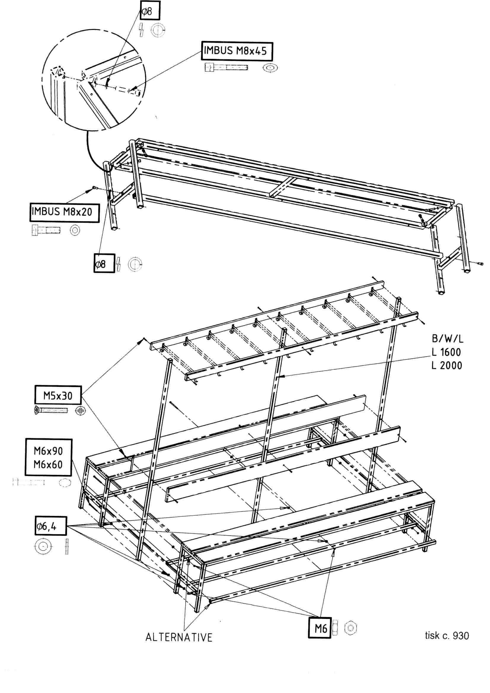 - robuste Konstruktion aus Stahlprofilen 25 x 25 mm, Pulverbeschichtet in Lichtgrau RAL 7035