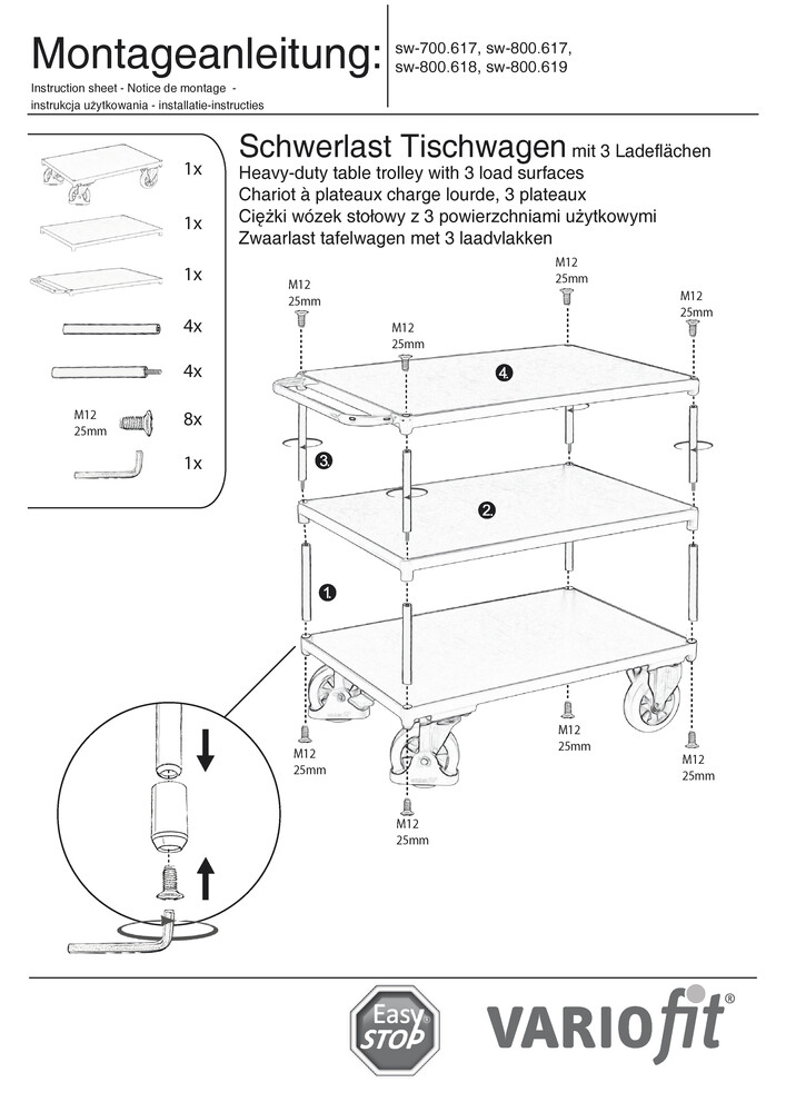 Tischwagen VARIOfit mit 3 Etagen, 1000x700 mm, Tragfähigkeit 1000 kg
