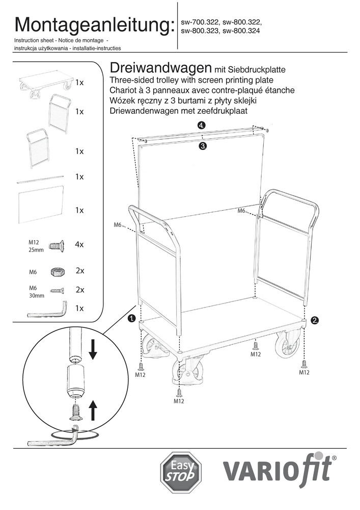 Plattformwagen VARIOfit mit 3 hohen Wänden, 1600 x 800 mm, Tragfähigkeit 1000 kg
