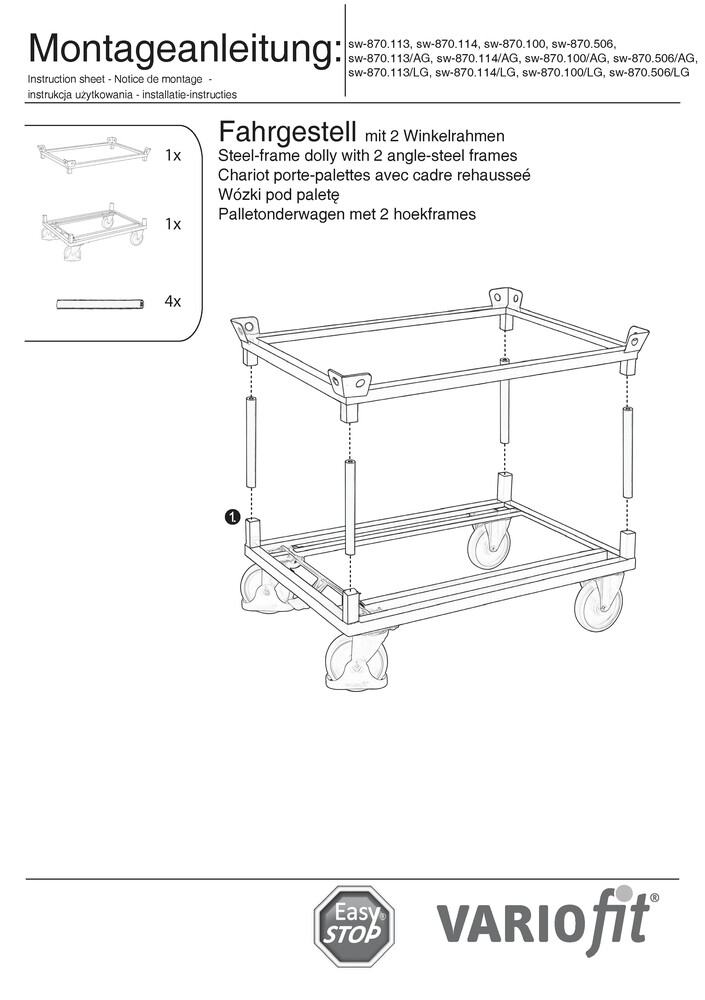 Fahrgestelle VARIOfit für Paletten und Behälter, 1010x810 mm, Höhe 650 mm, Tragfähigkeit 500 kg