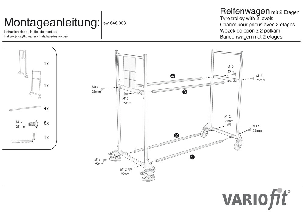 VARIOfit Transportwagen für Reifen, 2 Etagen, HxB: 1430x1205 mm, Tragfähigkeit 300 kg