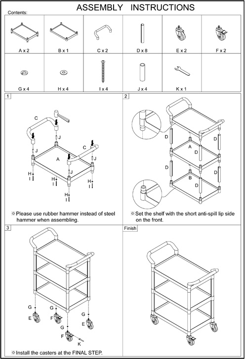 Allzweckwagen aus Kunststoff, 3 Etagen , BxLxH: 850x480x1000 mm