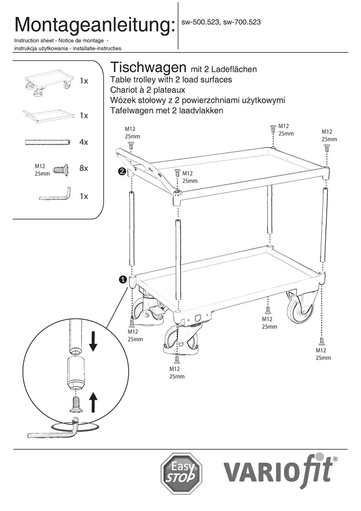 Montagehilfswagen VARIOfit mit 2 Wannenböden, Hochbügel, 845x495 mm, Tragfähigkeit 400 kg