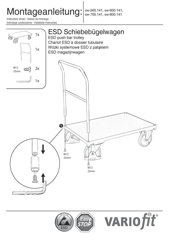 ESD-Plattformwagen VARIOfit, 1000x700 mm, Tragfähigkeit 500 kg