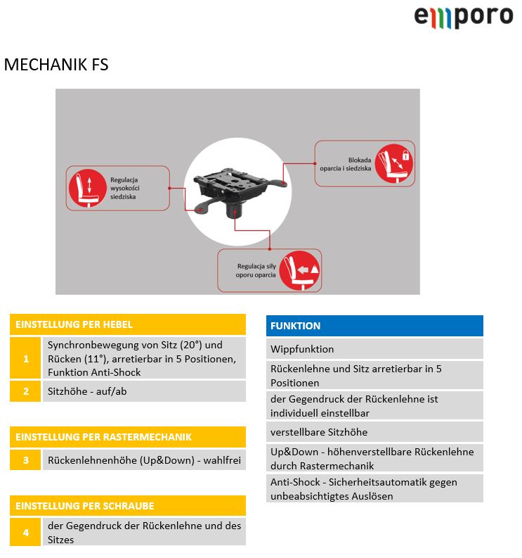 - Anti-Shock-Funktion – verhindert, dass die Rückenlehne nach Lösung der Arretierung