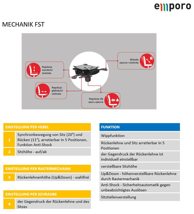 - komfortables Sitzen durch Synchron-Mechanik FST