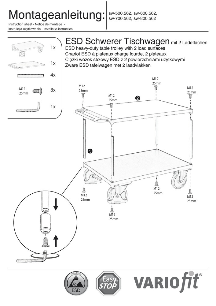 ESD - Tischwagen VARIOfit, 2 Etagen, 1000 x 600 mm. Tragfähigkeit 500 kg